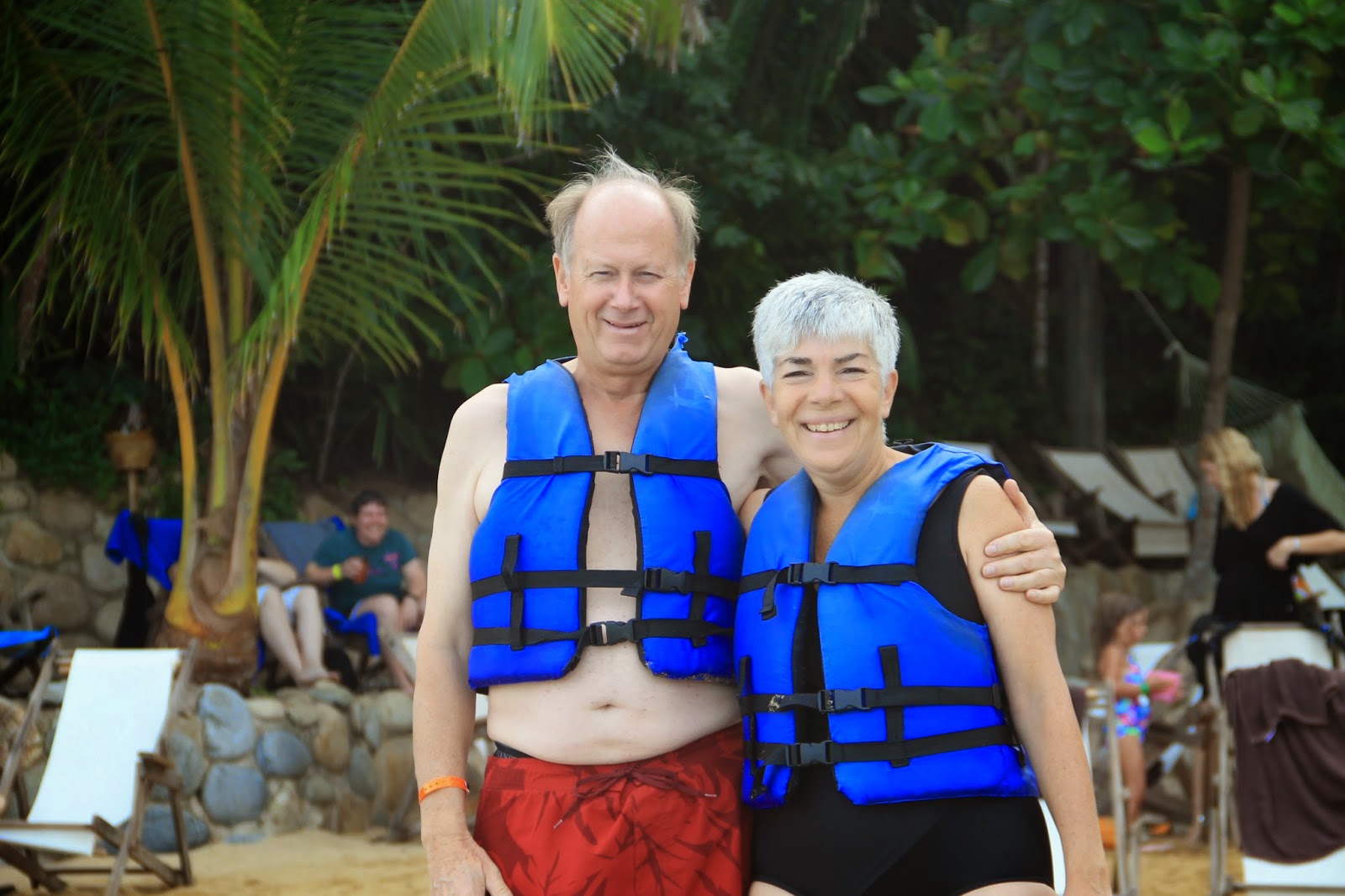 Auntie Carol and Uncle Garry enjoying some margaritas on the beach