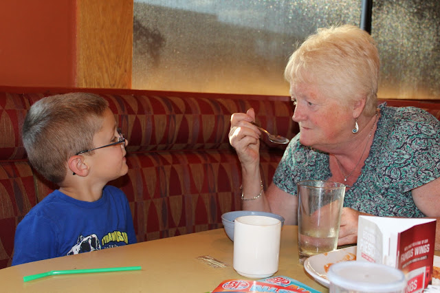 Jordie woke up from his nap with a little bit of a fever so it was great that we were going to Grandma's house to have some pizza instead of attempting another restaurant meal.